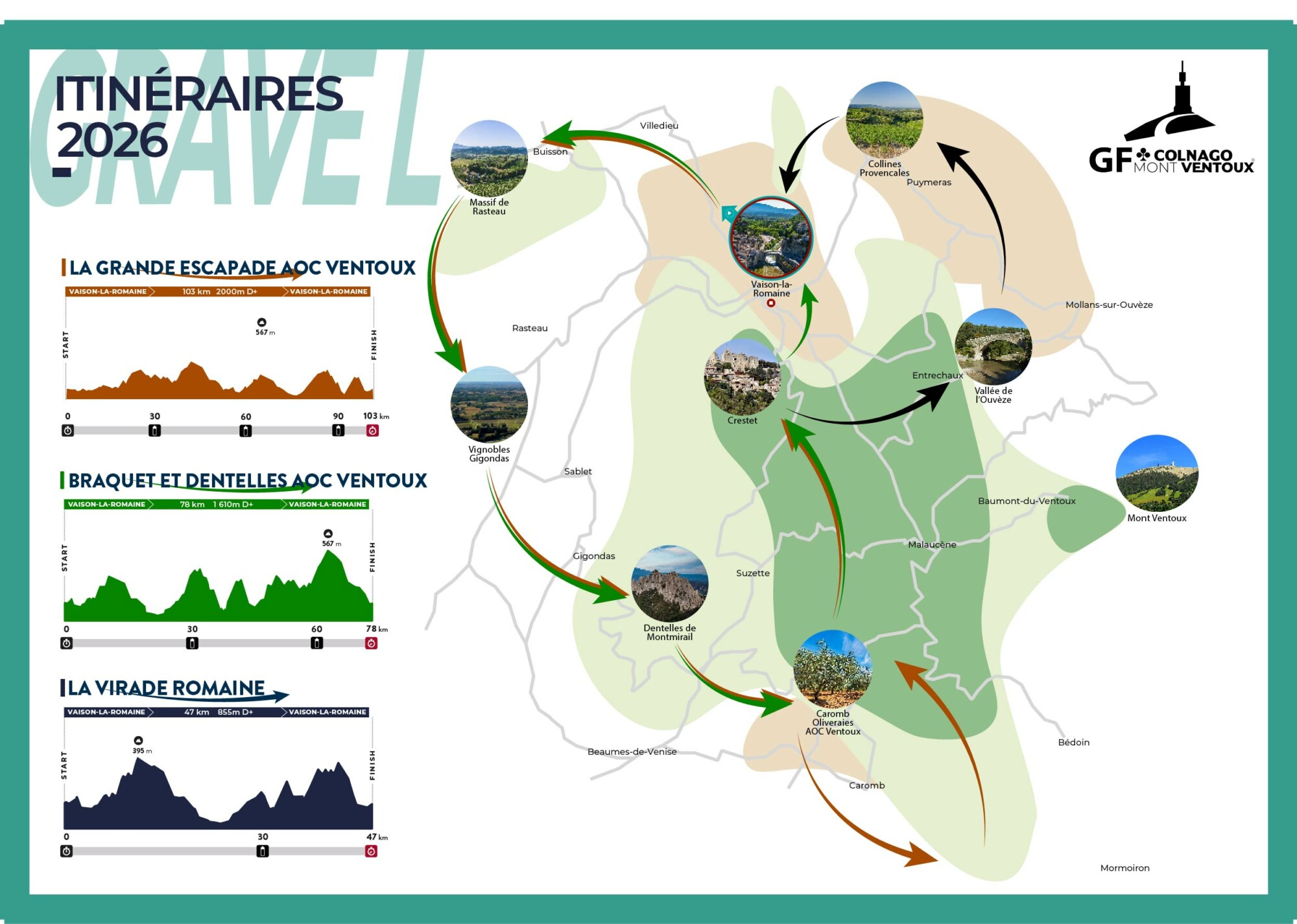 Sur ces parcours Gravel, nous avons fait le choix de ne pas vous emmener au sommet du Mont Ventoux afin de vous faire découvrir des paysages tout aussi grandioses mais surtout plus adaptés à la pratique du Gravel.